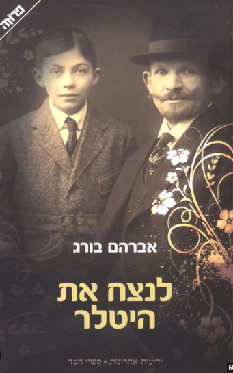 The core of Burg’s anti-Zionist argument is hinted at in the title of his 2007 book The Holocaust is Over: We must rise from its ashes. Essentially his argument is that Israel should get over what he sees as its unhealthy obsession with the Holocaust. The argument is perhaps even clearer in the title of the Hebrew edition, published the previous year, which can be translated as “Defeating Hitler” (see cover below).